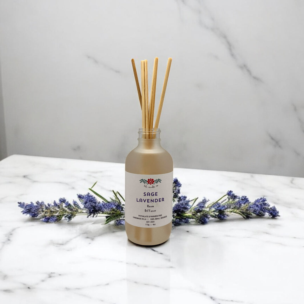Embrace the tranquility of a sun-drenched herb garden with our Sage + Lavender Diffuser. This serene and uplifting fragrance blends the classic, calming notes of lavender with a fresh, earthy twist of sage. It's the perfect way to bring a moment of natural calm into any room.